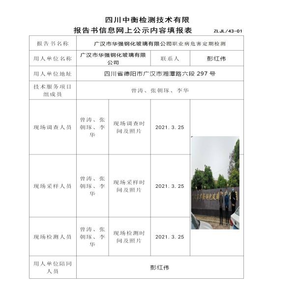 廣漢市華強鋼化玻璃有限公司定期檢測