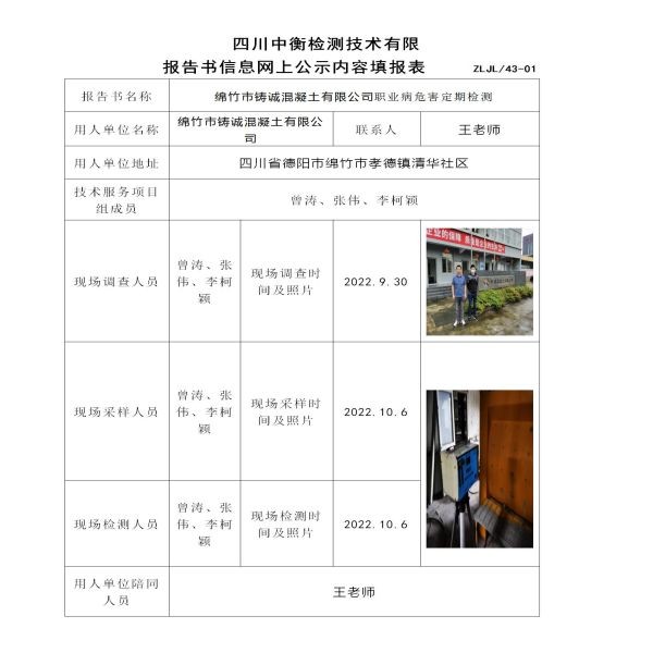 綿竹市鑄誠混凝土有限公司定期檢測
