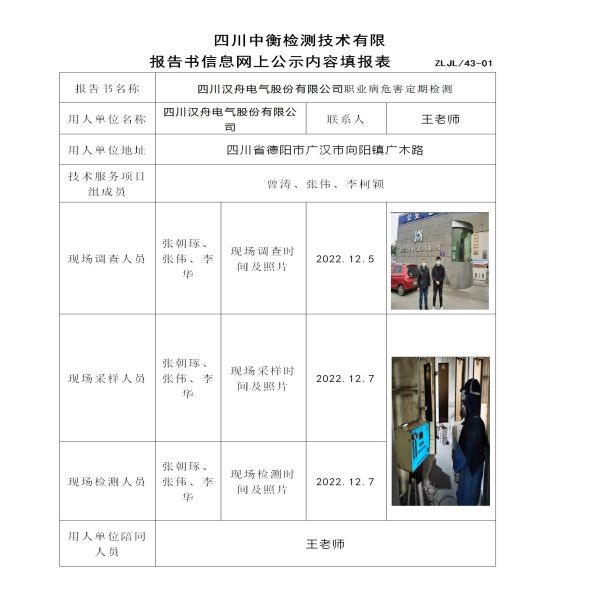 四川漢舟電氣股份有限公司定期檢測(cè)