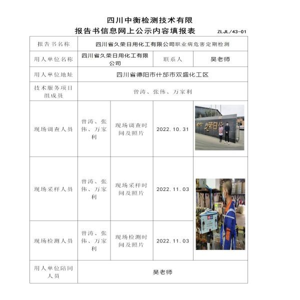 四川省久榮日用化工有限公司定期檢測(cè)