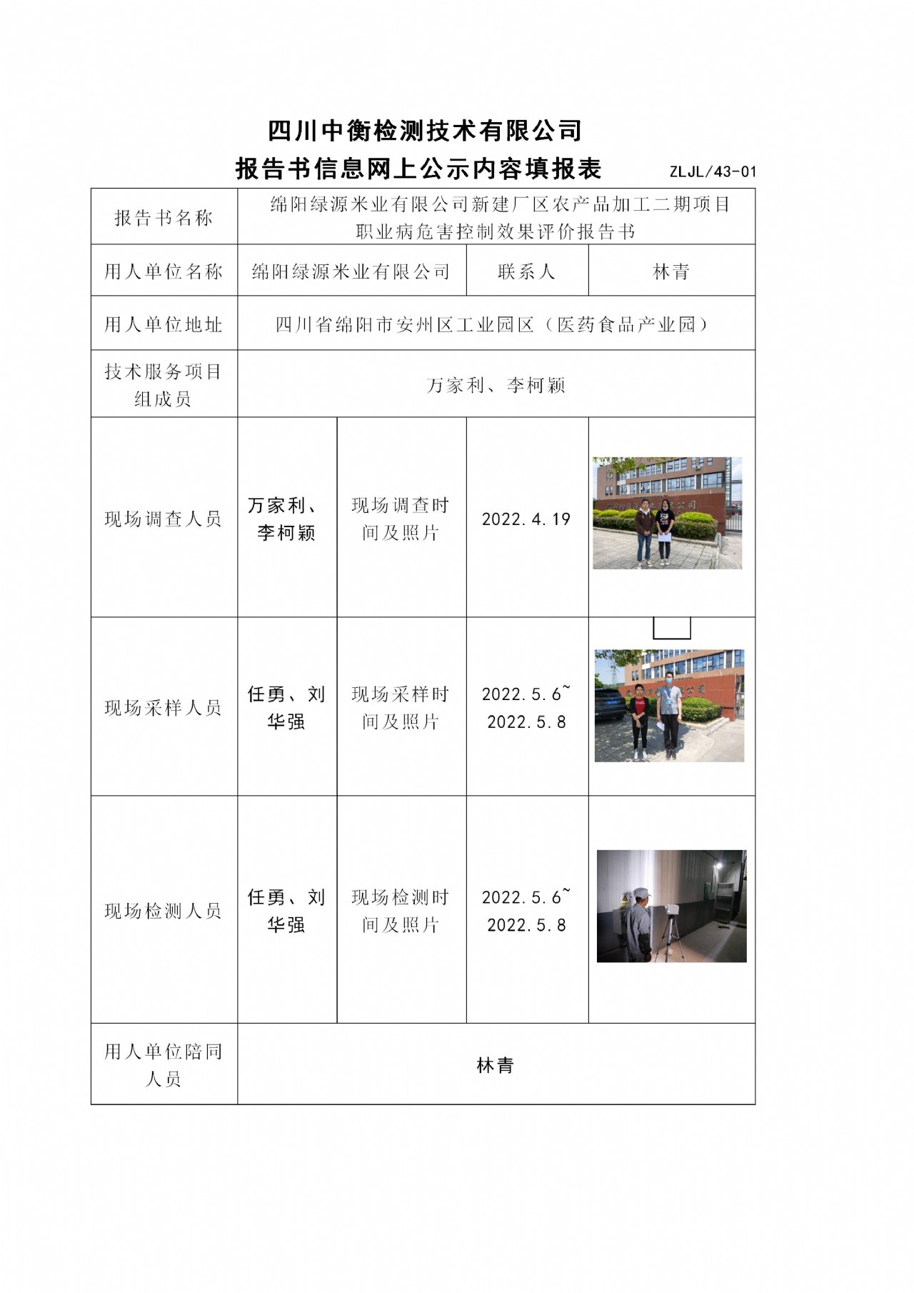 綿陽綠源米業(yè)有限公司新建廠區(qū)農(nóng)產(chǎn)品加工二期項(xiàng)目 職業(yè)病危害控制效果評價(jià)