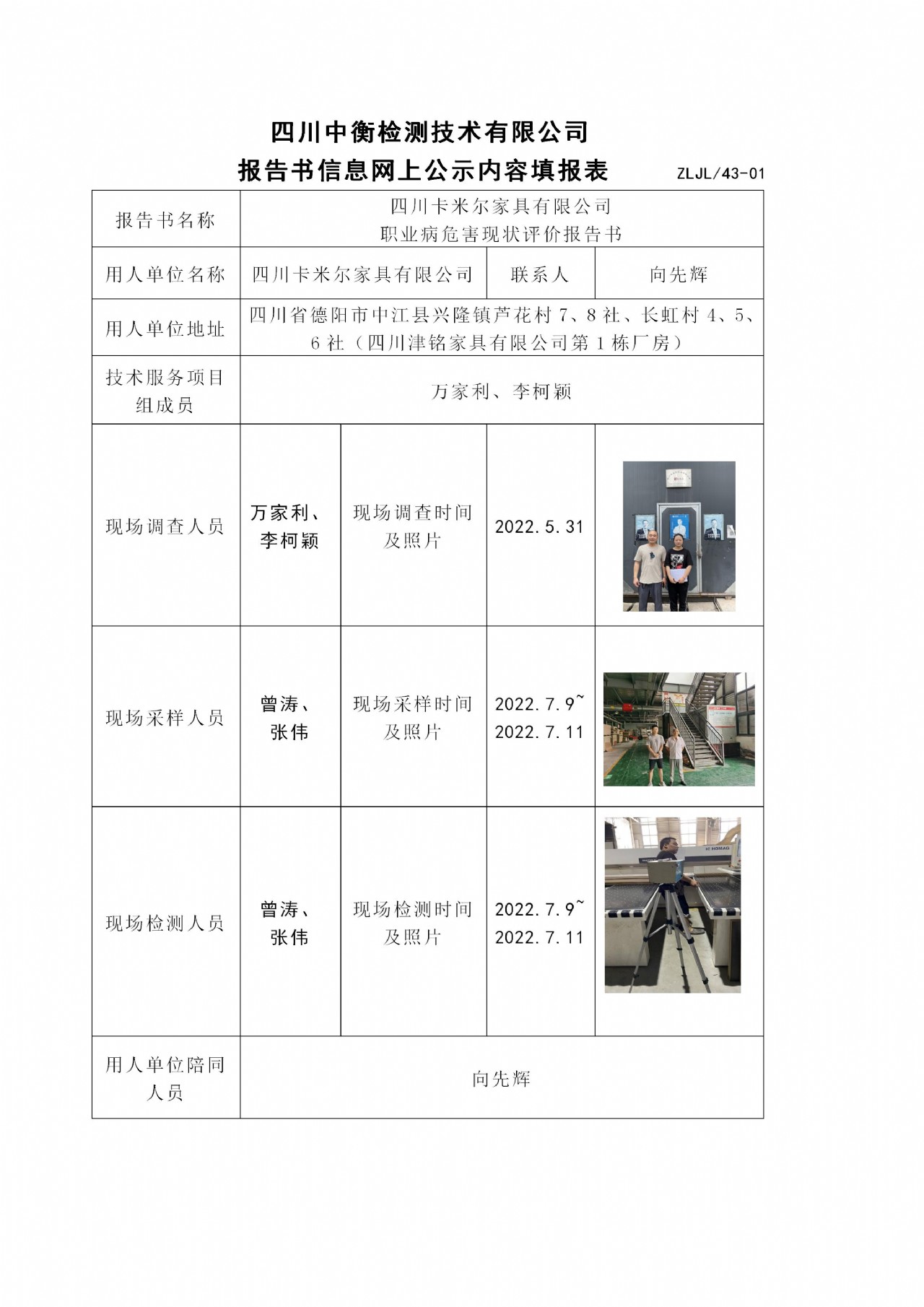 四川卡米爾家具有限公司 職業(yè)病危害現(xiàn)狀評價