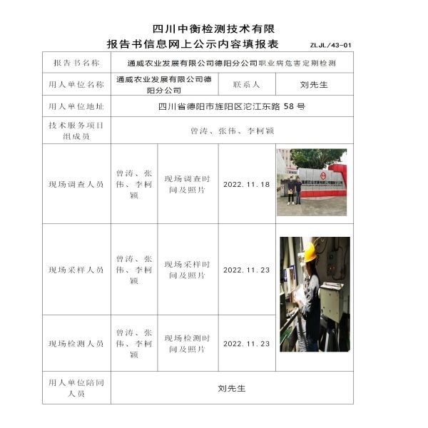通威農(nóng)業(yè)發(fā)展有限公司德陽分公司定期檢測(cè)
