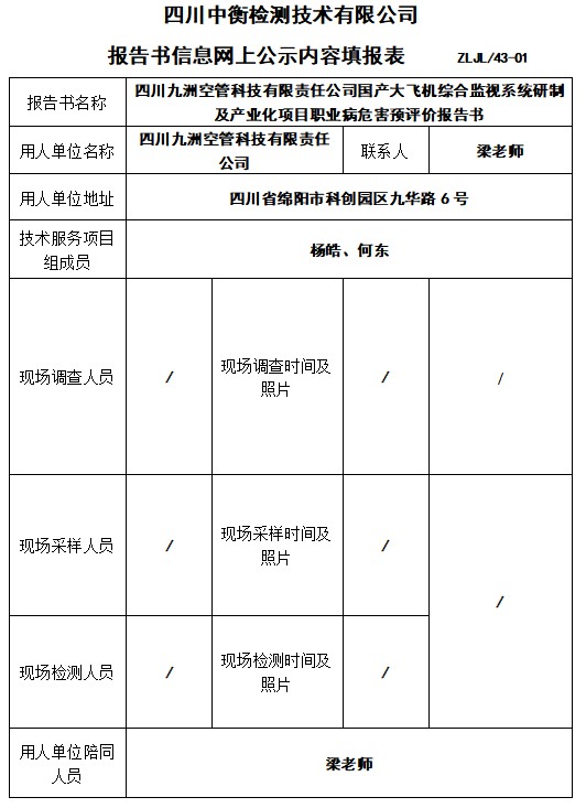 四川九洲空管科技有限責(zé)任公司國(guó)產(chǎn)大飛機(jī)綜合監(jiān)視系統(tǒng)研制及產(chǎn)業(yè)化項(xiàng)目職業(yè)病危害預(yù)評(píng)價(jià)報(bào)告書