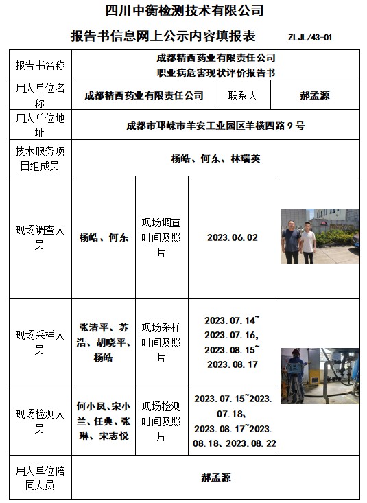 成都精西藥業(yè)有限責(zé)任公司 職業(yè)病危害現(xiàn)狀評(píng)價(jià)