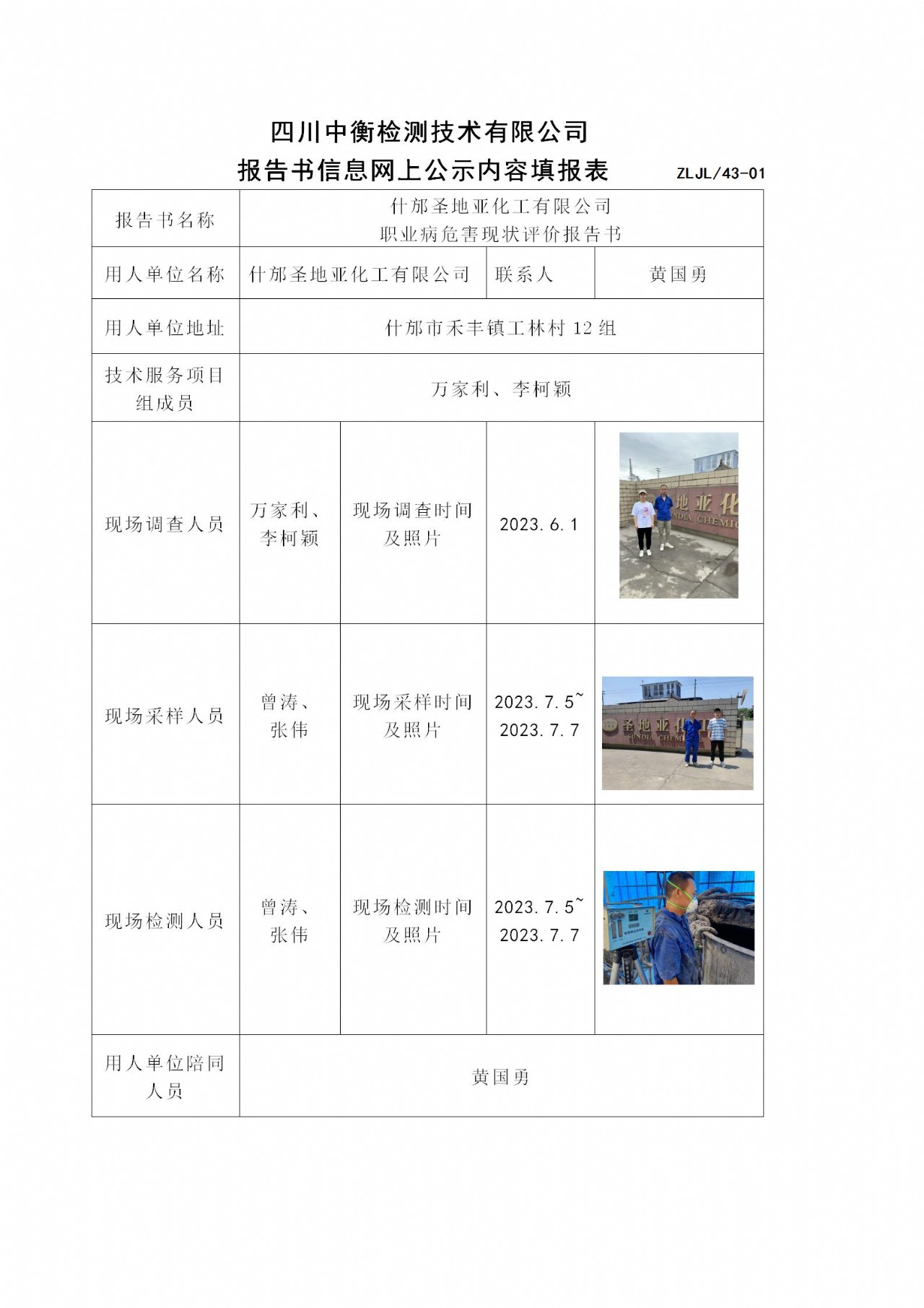 什邡圣地亞化工有限公司 職業(yè)病危害現(xiàn)狀評價(jià)報(bào)告