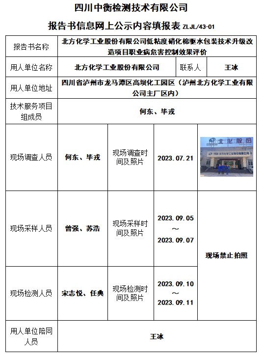 北方化學(xué)工業(yè)股份有限公司低粘度硝化棉驅(qū)水包裝技術(shù)升級(jí)改造項(xiàng)目職業(yè)病危害控制效果評(píng)價(jià)