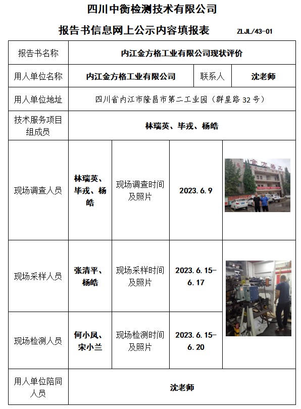 內(nèi)江金方格工業(yè)有限公司現(xiàn)狀評價