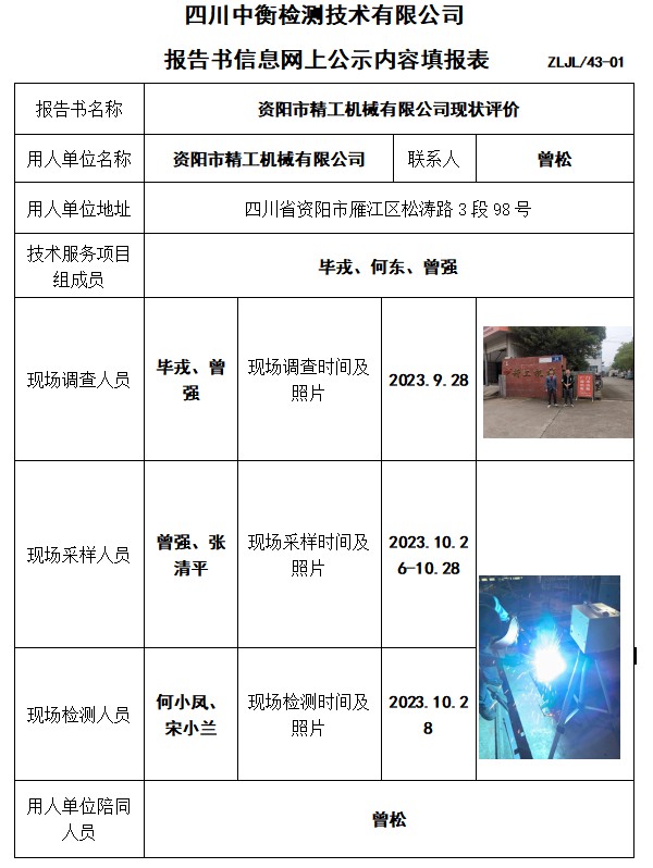 資陽市精工機(jī)械有限公司現(xiàn)狀評價