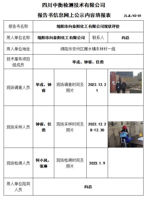 綿陽(yáng)市向泰陽(yáng)化工有限公司現(xiàn)狀評(píng)價(jià)