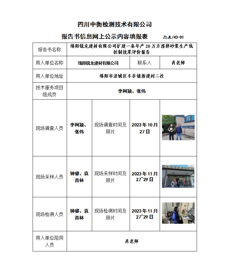 綿陽(yáng)銳龍建材有限公司擴(kuò)建一條年產(chǎn)20萬(wàn)方濕拌砂漿生產(chǎn)線控制效果評(píng)價(jià)報(bào)告