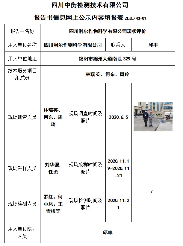 四川利爾作物科學(xué)有限公司現(xiàn)狀評價