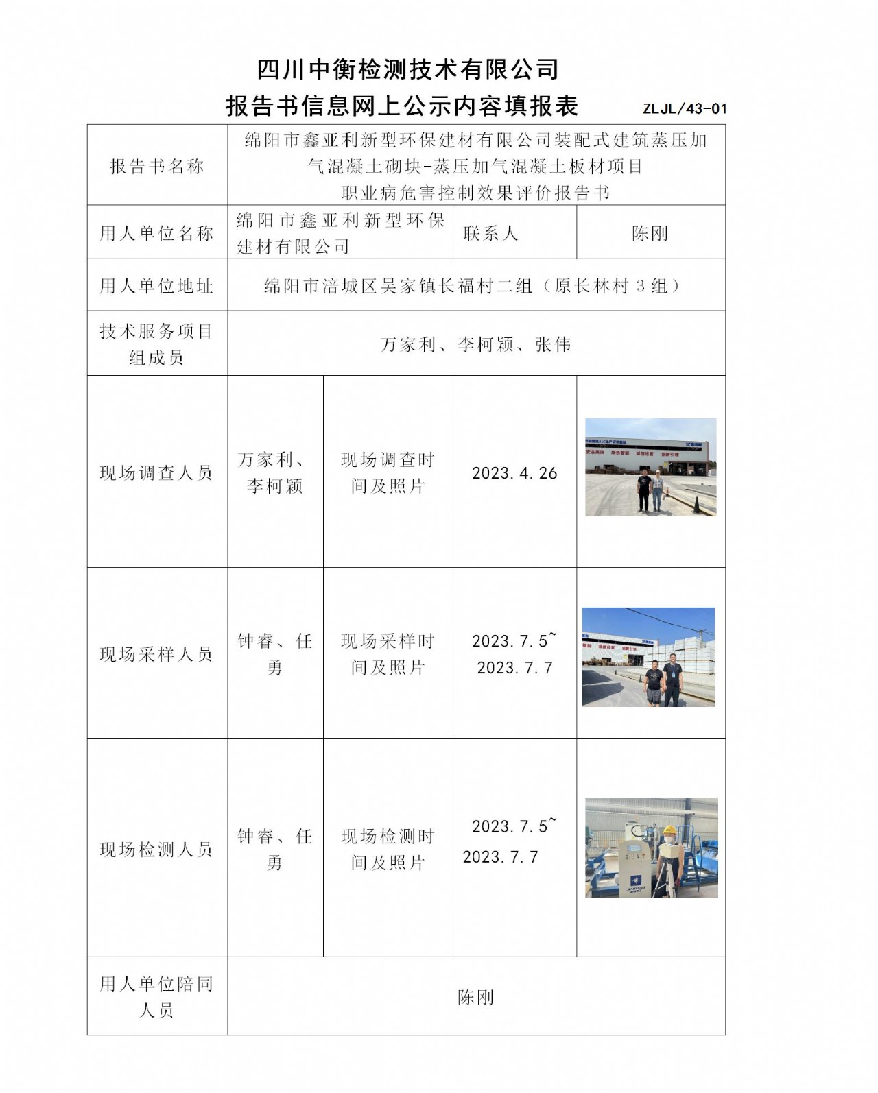 綿陽市鑫亞利新型環(huán)保建材有限公司裝配式建筑蒸壓加氣混凝土砌塊-蒸壓加氣混凝土板材項目 職業(yè)病危害控制效果評價