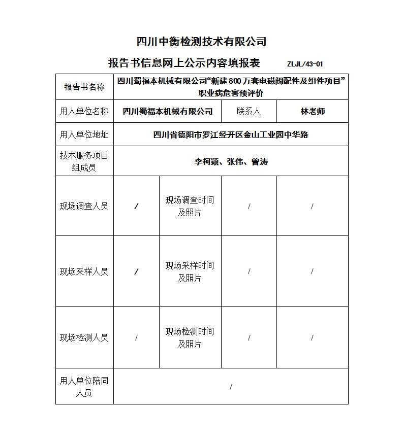 四川蜀福本機(jī)械有限公司“新建800萬套電磁閥配件及組件項(xiàng)目”職業(yè)病危害預(yù)評(píng)價(jià)