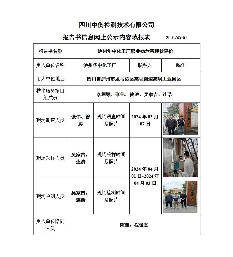 瀘州華中化工廠職業(yè)病危害現狀評價