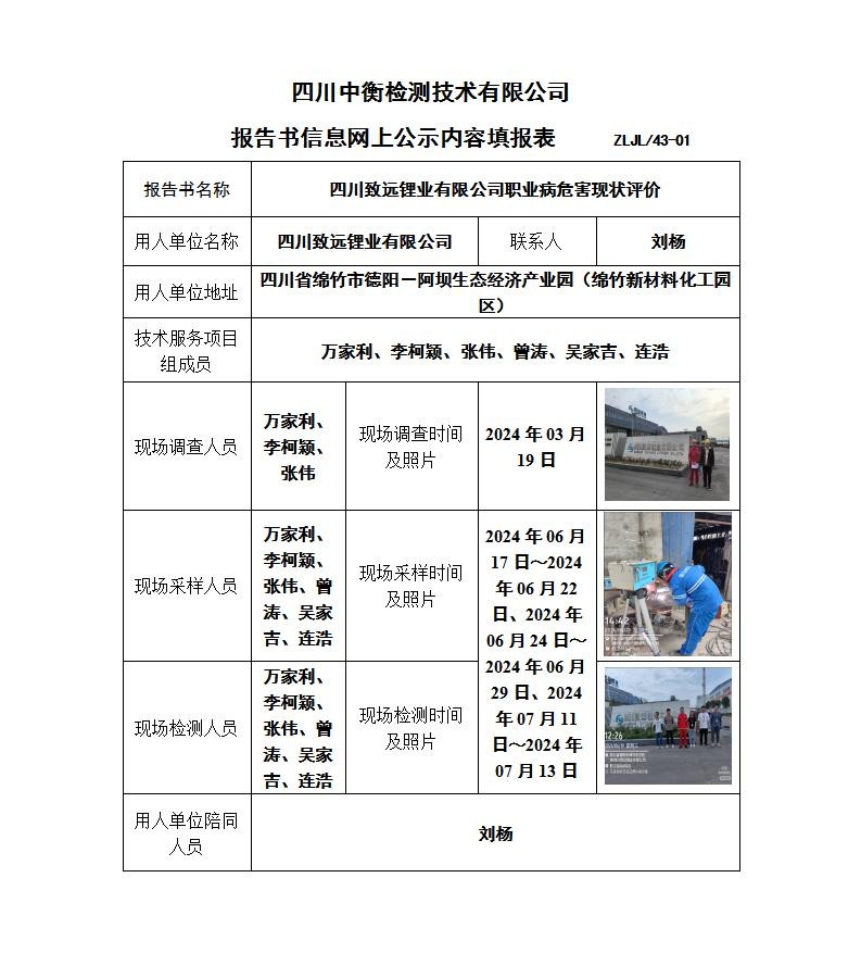 四川致遠(yuǎn)鋰業(yè)有限公司職業(yè)病危害現(xiàn)狀評價(jià)