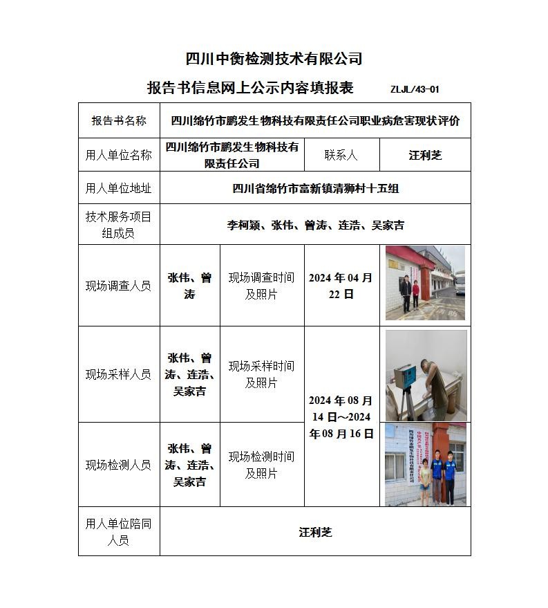 四川綿竹市鵬發(fā)生物科技有限責(zé)任公司職業(yè)病危害現(xiàn)狀評(píng)價(jià)