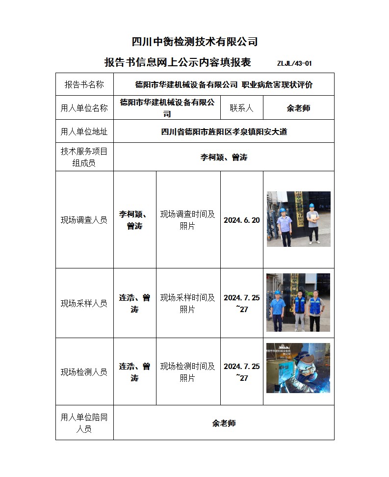 德陽市華建機械設備有限公司 職業(yè)病危害現(xiàn)狀評價報告書