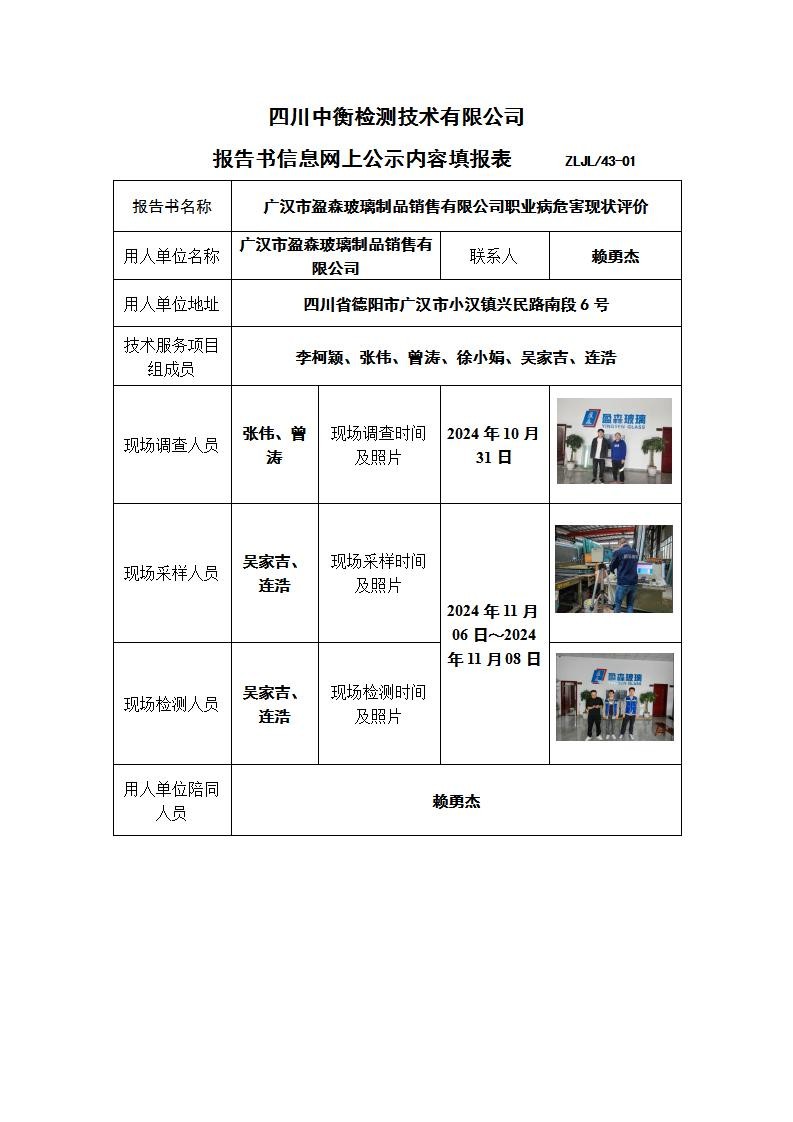 廣漢市盈森玻璃制品銷售有限公司職業(yè)病危害現(xiàn)狀評價