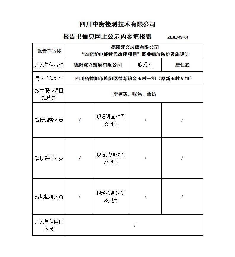 德陽(yáng)雙興玻璃有限公司“2#窯爐電能替代改建項(xiàng)目”職業(yè)病放防護(hù)設(shè)施設(shè)計(jì)