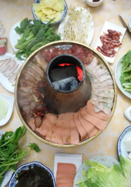 5點(diǎn)下山,回到酒店,開始晚餐:特色臧家火鍋。火鍋的味道還是很不錯(cuò)的,主題以素菜為主肉食為輔,廚師刀工特別好,肉薄似紗,私人訂制一人一片。