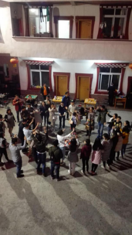 晚飯后回房間休憩修整,8點(diǎn)30晚上的活動(dòng)便開始了——烤全羊和跳鍋莊!跟著熱情的“瑟浪”和“以沫”一陣的群魔亂舞,盡管大家的舞姿都迷之奇特,但是在當(dāng)下的氣氛下依然覺得很美好,每個(gè)人臉上洋溢的都是滿滿的開心。一陣活絡(luò)后大家圍坐下來開始準(zhǔn)備吃!烤!全!羊!!過程中不斷有游客上去唱著自己拿手的歌曲為大家助興,其中包括我們的歌神謙謙,一開口就驚艷四座,歡呼聲鼓掌聲不斷。熱熱鬧鬧的篝火晚會(huì)以及一天的行程在導(dǎo)游的歌聲中結(jié)束。