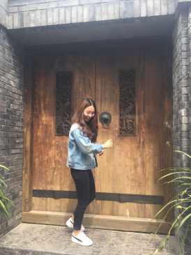 舊式木制大門的銅環(huán),濃郁的樹木和色彩艷麗的花,還有碧綠的藤蔓邁上屋頂,更有一群青春可愛的人,為這寧靜的氛圍增添了一份活潑的氣息。