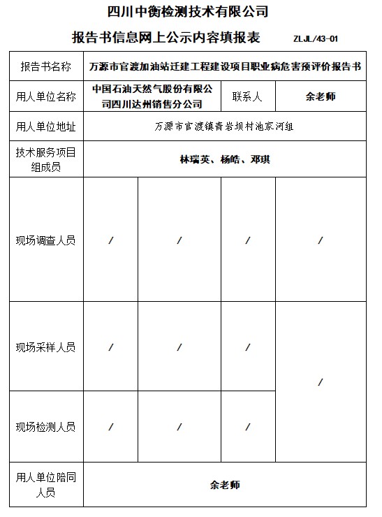 萬源市官渡加油站遷建工程建設(shè)項(xiàng)目職業(yè)病危害預(yù)評價(jià)報(bào)告書