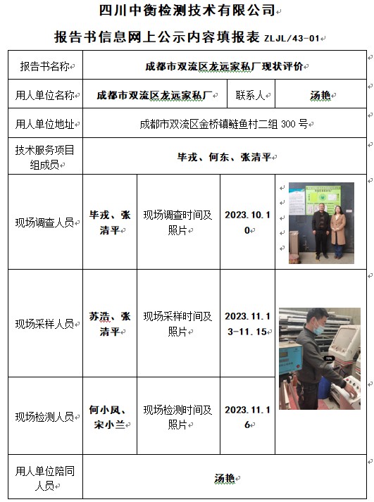 成都市雙流區(qū)龍遠(yuǎn)家私廠現(xiàn)狀評價(jià)