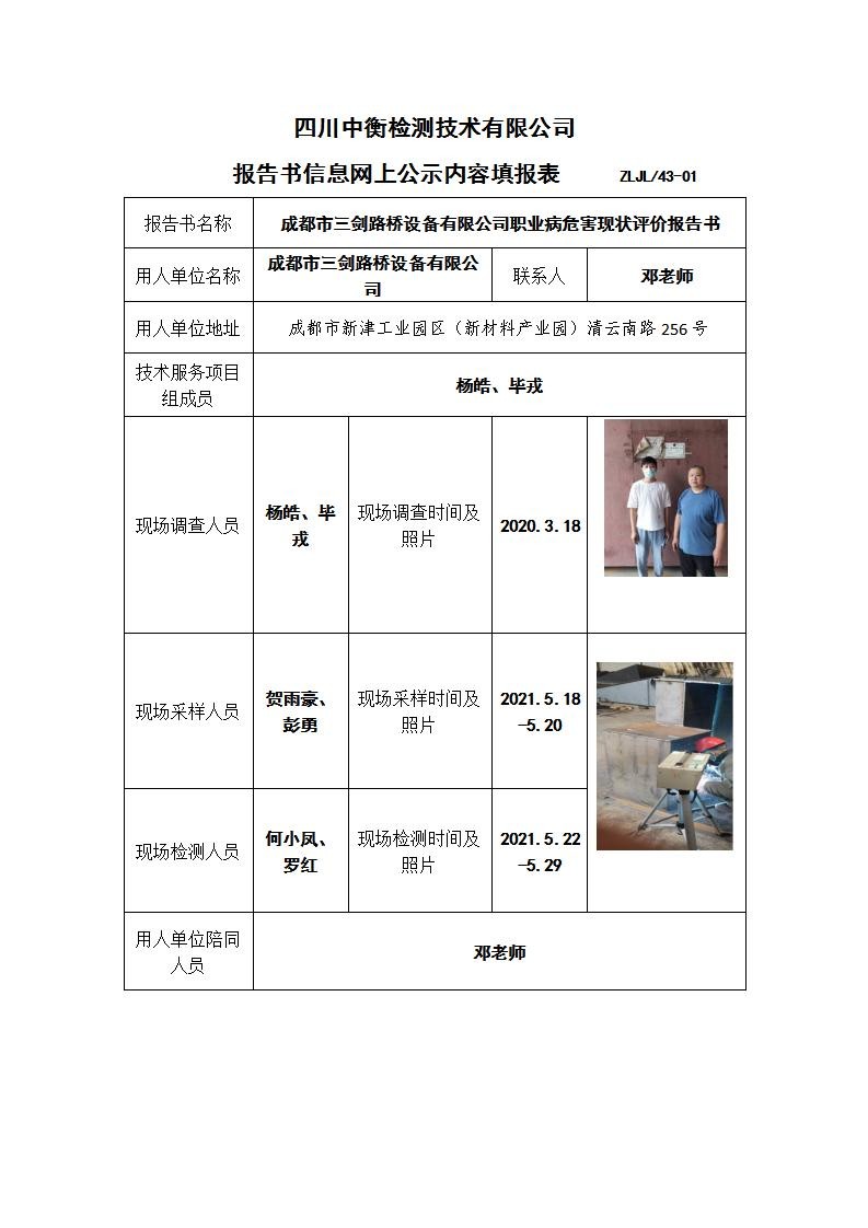 成都市三劍路橋設備有限公司職業(yè)病危害現(xiàn)狀評價報告書