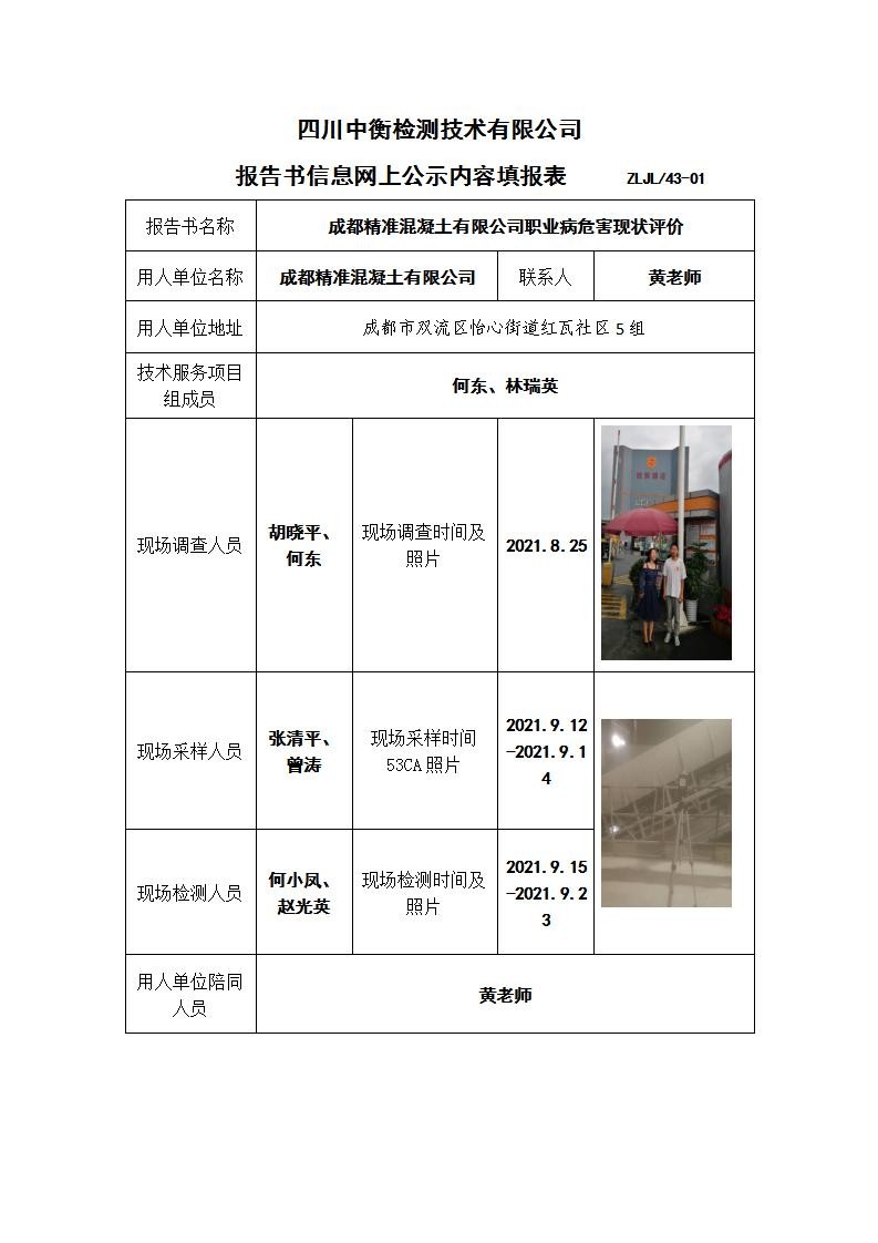 成都精準(zhǔn)混凝土有限公司職業(yè)病危害現(xiàn)狀評(píng)價(jià)