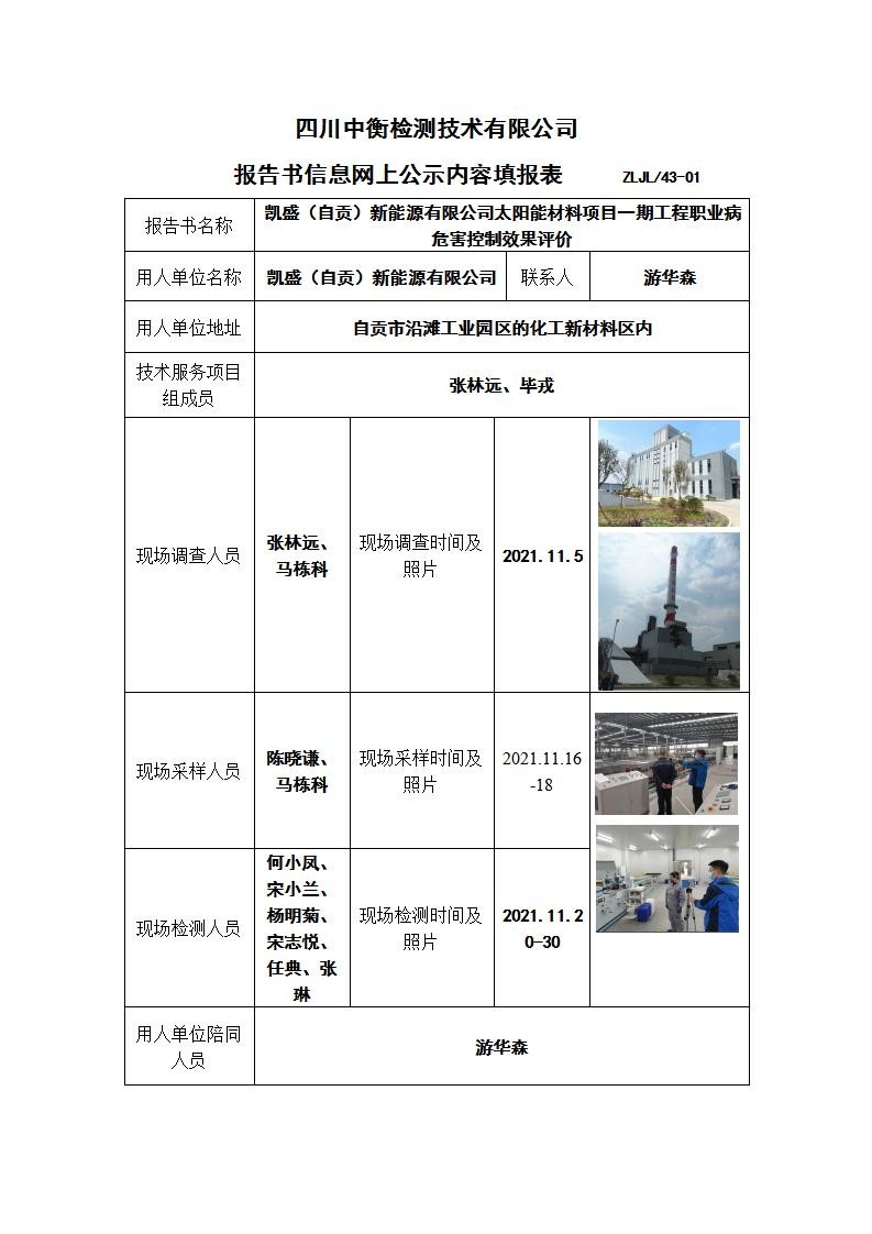 凱盛(自貢)新能源有限公司太陽能材料項目一期工程職業(yè)病危害控制效果評價