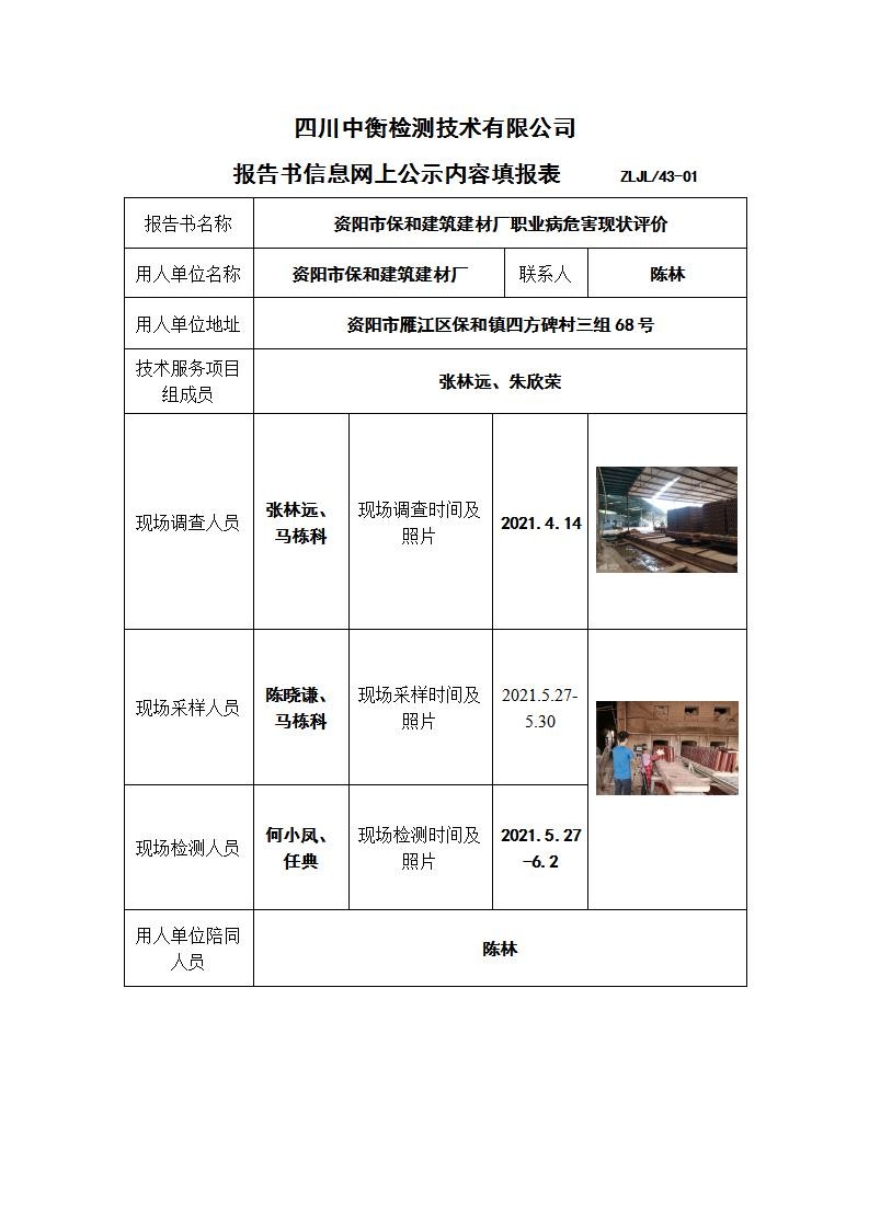 資陽市保和建筑建材廠職業(yè)病危害現(xiàn)狀評價