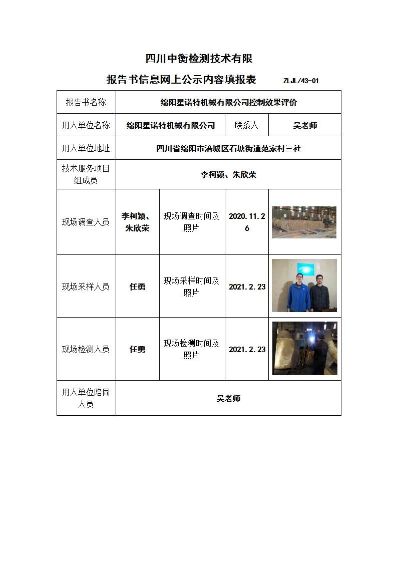 綿陽(yáng)星諾特機(jī)械有限公司控制效果評(píng)價(jià)