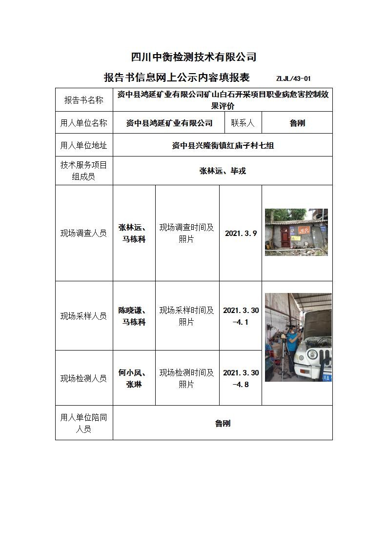 資中縣鴻延礦業(yè)有限公司礦山白石開(kāi)采項(xiàng)目職業(yè)病危害控制效果評(píng)價(jià)