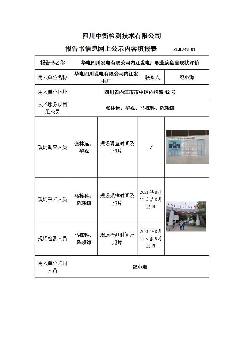 華電四川發(fā)電有限公司內(nèi)江發(fā)電廠職業(yè)病危害現(xiàn)狀評價