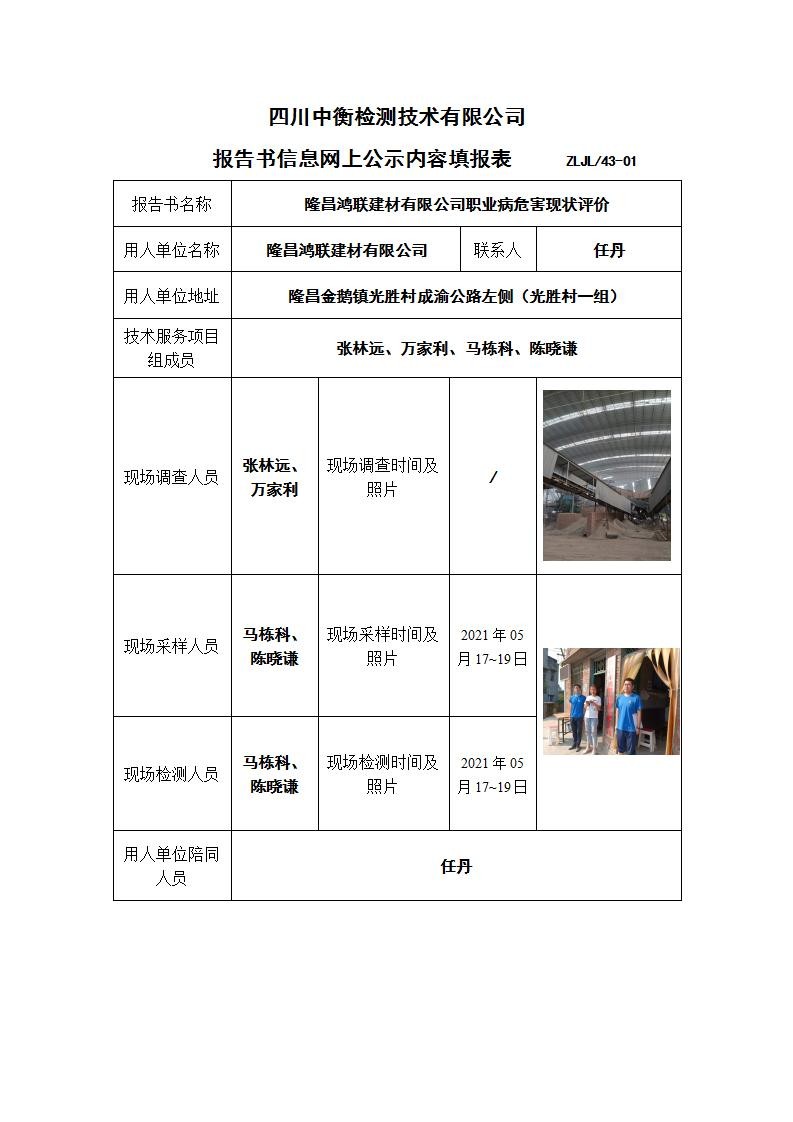 隆昌鴻聯(lián)建材有限公司職業(yè)病危害現(xiàn)狀評(píng)價(jià)