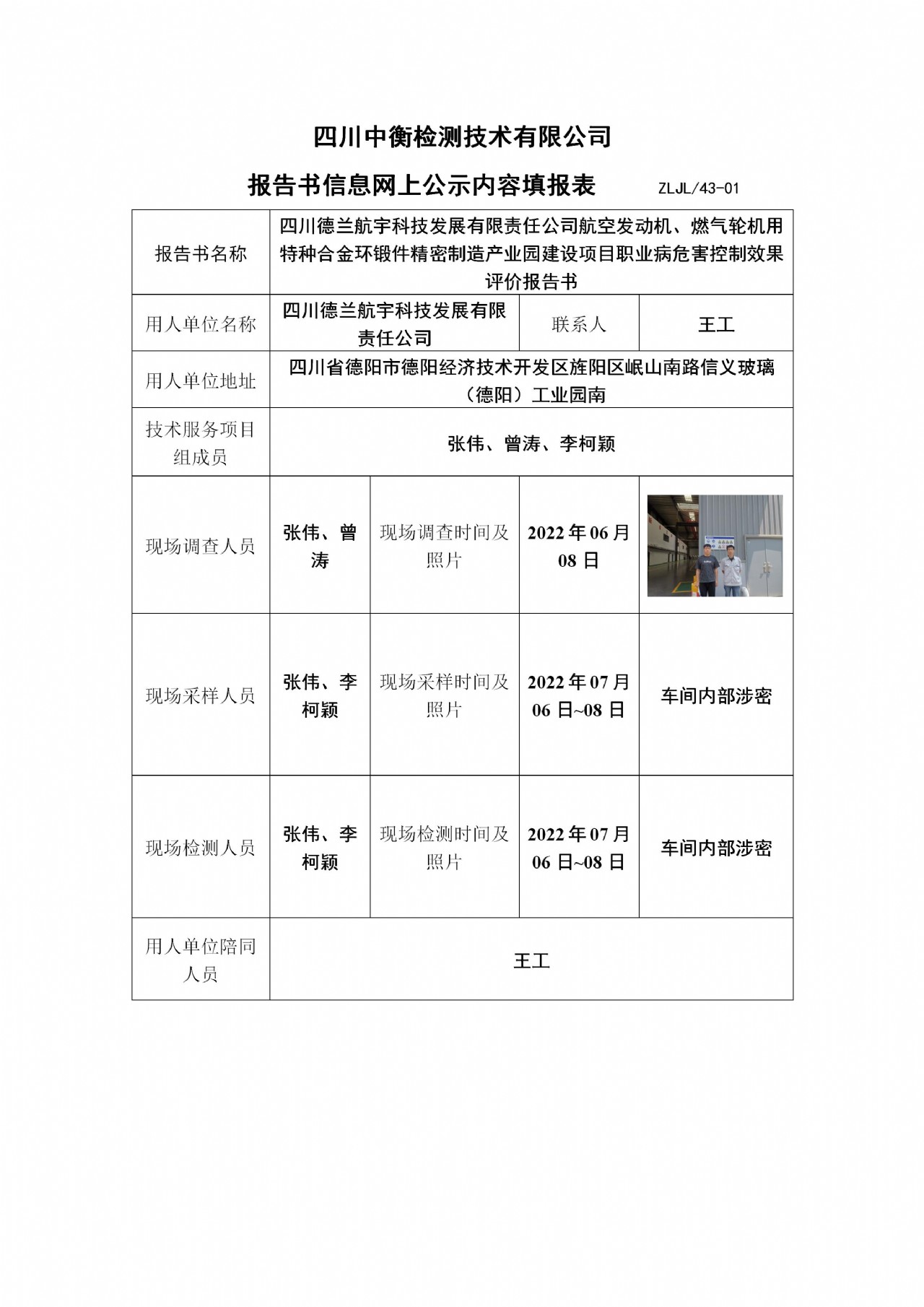 四川德蘭航宇科技發(fā)展有限責(zé)任公司航空發(fā)動(dòng)機(jī)、燃?xì)廨啓C(jī)用特種合金環(huán)鍛件精密制造產(chǎn)業(yè)園建設(shè)項(xiàng)目職業(yè)病危害控制效果評(píng)價(jià)