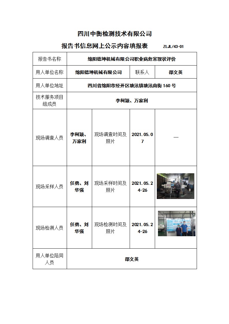 綿陽德坤機(jī)械有限公司職業(yè)病危害現(xiàn)狀評(píng)價(jià)