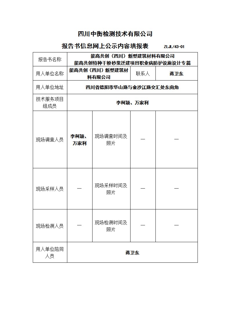 能高共創(chuàng)(四川)新型建筑材料有限公司 能高共創(chuàng)特種干粉砂漿遷建項目職業(yè)病防護(hù)設(shè)施設(shè)計專篇