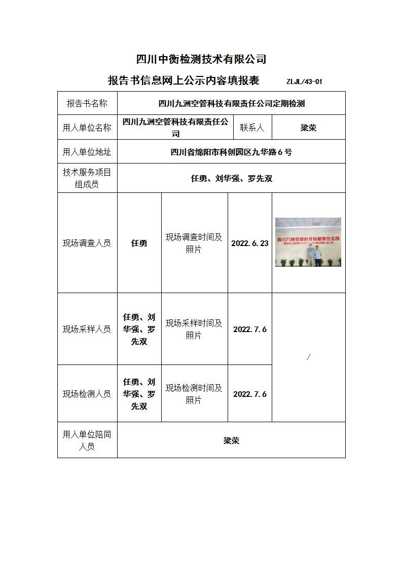 四川九洲空管科技有限責(zé)任公司職業(yè)病危害定期檢測