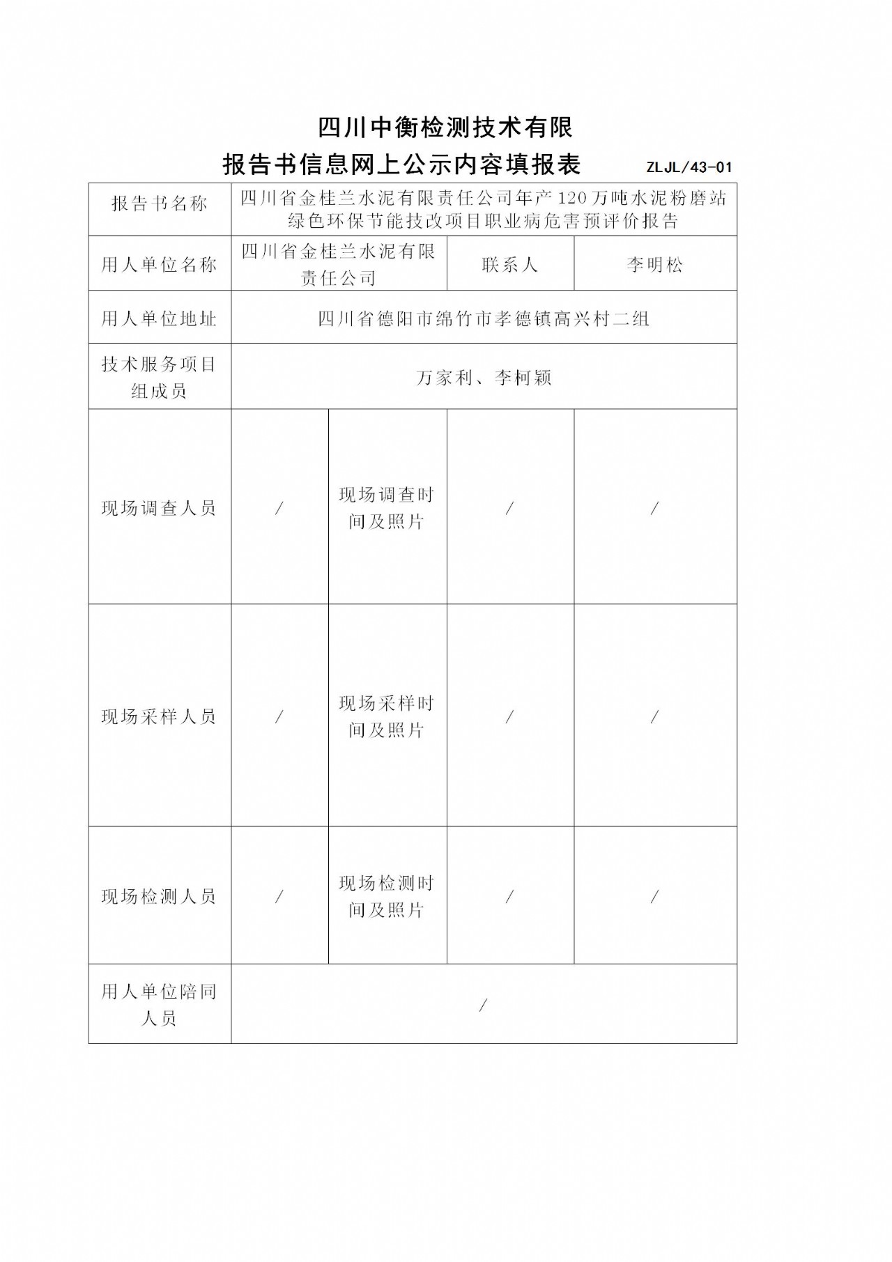 四川省金桂蘭水泥有限責(zé)任公司年產(chǎn)120萬噸水泥粉磨站綠色環(huán)保節(jié)能技改項(xiàng)目職業(yè)病危害預(yù)評(píng)價(jià)報(bào)告