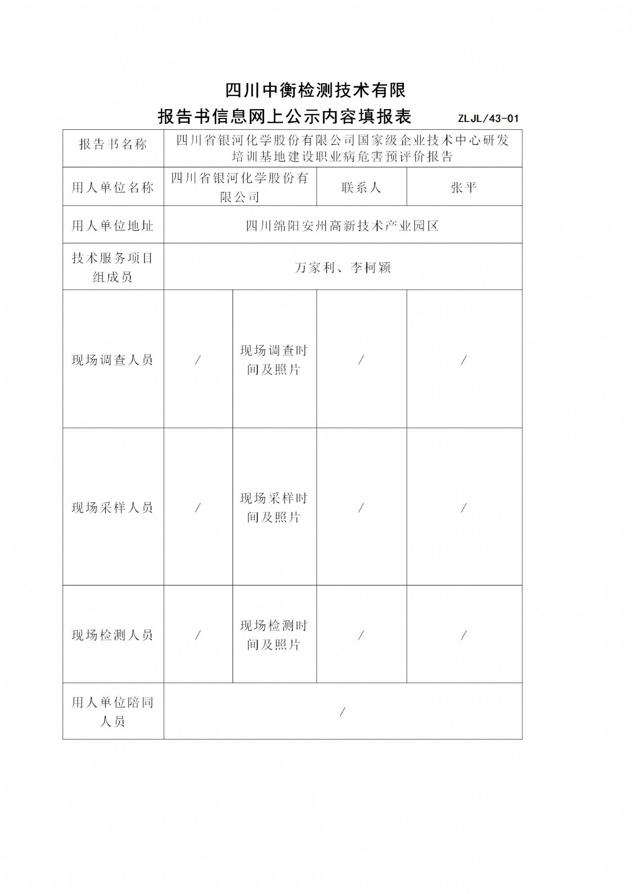 四川省銀河化學股份有限公司國家級企業(yè)技術中心研發(fā)培訓基地建設職業(yè)病危害預評價報告