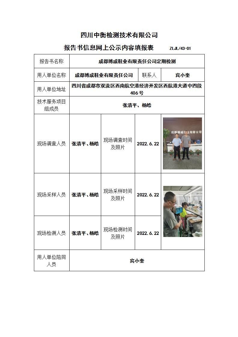 成都博成鞋業(yè)有限責(zé)任公司職業(yè)病危害定期檢測(cè)