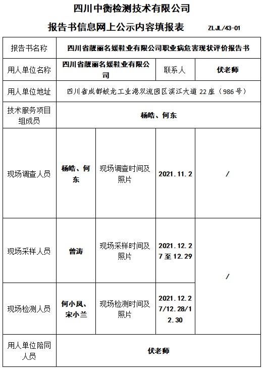 四川省靚麗名媛鞋業(yè)有限公司職業(yè)病危害現(xiàn)狀評價
