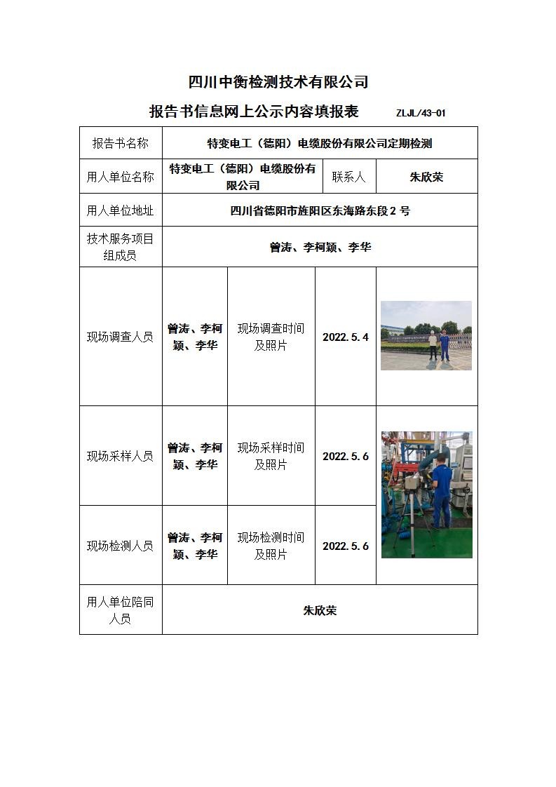 特變電工(德陽)電纜股份有限公司定期檢測(cè)