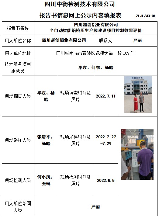 四川越創(chuàng)鋁業(yè)有限公司 全自動智能鋁擠壓生產(chǎn)線建設(shè)項目控制效果評價