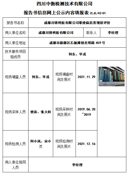 成都川鋒栲膠有限公司職業(yè)病危害現(xiàn)狀評(píng)價(jià)