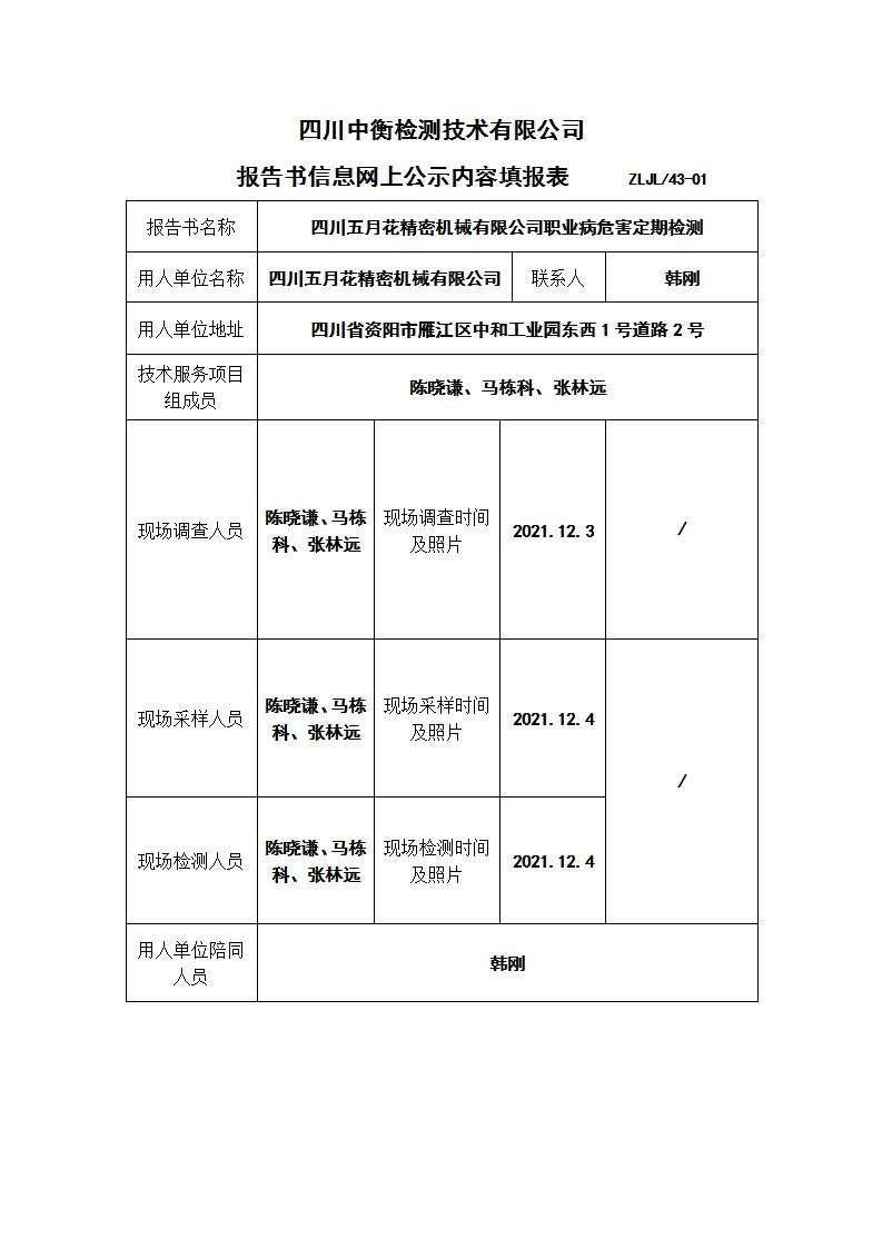 四川五月花精密機(jī)械有限公司職業(yè)病危害定期檢測(cè)