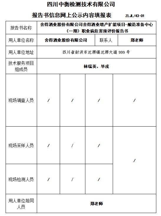 舍得酒業(yè)股份有限公司舍得酒業(yè)增產(chǎn)擴(kuò)能項(xiàng)目-釀造準(zhǔn)備中心 (一期)職業(yè)病危害預(yù)評(píng)價(jià)